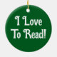 Cute, vintage picture of a gnome reading a book, is featured on this ceramic Christmas ornament for book lovers. Gnome picture is on the front of this ornament and back of the ornament states, "I Love To Read"! Back of ornament is in a Christmas green with white lettering. A great special gift for the reading fans in your life!