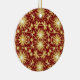 This ornament features a striking pattern of radiant gold starbursts arranged on a deep red background, creating a warm and festive holiday look. The bright golden shapes resemble twinkling Christmas lights and sparkling winter stars, giving the design a glowing, celebratory feel. Small floral elements and delicate detailing add charm and elegance to the overall pattern.