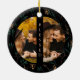 Este hermoso adorno navideño presenta una rústica impresión botánica de color oro y verde sobre un elegante fondo negro. La tipografía bendecida inspiradora enmarca dos modernas fotos de arco circular. Vea esta colección de vacaciones para opciones de color festivo adicionales.
