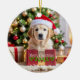 Golden retriever Christmas celebration. Oh so cute, Golden Retriever puppy emerging from a Christmas present. Merry Christmas.