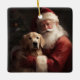 Adorno De Cerámica Golden Retriever Con Navidades De Santa Clause