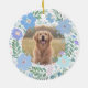 Honor your beloved Golden Retriever with this pastel blue floral ornament. Upload a cherished photo, personalize the top message, and add their name. The silhouette remains fixed for a polished, elegant look. A tender Rainbow Bridge tribute.