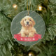 Celebrate your beloved furry friend this holiday season with this adorable Personalized Golden Retriever Christmas Ornament! Featuring a heartwarming illustration of a Golden Retriever puppy framed by a cheerful red ribbon banner, this ornament is the perfect keepsake for dog lovers. The background is elegantly detailed with the repeating text "best dog ever," which can be easily customized adding a subtle, heartwarming touch. Add your puppy's name on the banner to make it uniquely yours. Hang it on your tree and let your dog’s love brighten up your home!