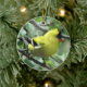 Este ornamento del día de fiesta ofrece un pequeño goldfinch precioso encaramado en una rama, rodeada por el follaje verde suave del verano. ¿Él no mirará el colgante precioso de su árbol de navidad?