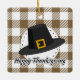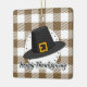 Gorra de peregrinos negros sobre un fondo de patrón dorado de búfalo blanco con la leyenda "Feliz Día de Acción de Gracias".