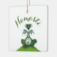 El dragón yogi se sienta en su lugar favorito para realizar su meditación diaria. Haz que este ornamento sea tu propio agregando tu propio texto, o elimínalo para dejarlo en blanco. Basado en una obra de arte original de © One Artsy Momma.