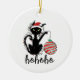Navidades negros divertidos encienden adorno cerámico Cat HoHoHo