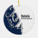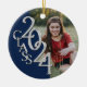 Añada una foto a este adorno de adorno de conservas de foto de color azul y plata de la "Clase 2020". Personalizar con un nombre y texto en la parte posterior o añadir otra foto.