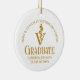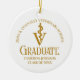 Este ornamento de Navidad de graduación de la escuela de medicina veterinaria maroon, personalizado de moda, presenta el nombre del graduado universitario en un elegante guión dorado para la clase de 2025 y su foto en la parte posterior. Personalizar en su universidad bajo el veterinario médico caduceus para un gran obsequio de conservas de graduación para una DVM.
