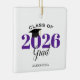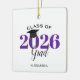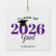 Este adorno navideño de graduación es un regalo perfecto para la clase de graduados de 2025. El diseño presenta el año en morado con un gorra de graduación de mortarboard. Personaliza con el nombre del graduado.