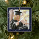 Este estilo conmemorativo de adorno de sake que se muestra incluye dos fotos del graduado...uno en el frente con su nombre, colegio y año de graduación en un tipo de letra de un cepillo con un borde EDITABLE NAVY AZUL y estrellas apagadas en el frente y una foto de sangre completa en la parte de atrás con el título CLASE DE "AÑO". Se puede cambiar el estilo/color/tamaño/posición del tipo de letra. Eliminar cualquier texto de ejemplo que no se desee. Tenga en cuenta que otros estilos de adorno pueden no ofrecer impresión en segundo plano. CONSEJO DE FOTOGRAFÍA/IMAGEN: Para obtener resultados más rápidos/mejores, elija una foto con el sujeto en el medio y/o pre-recortar su foto a una forma cuadrada ANTES de subirla y llenará el espacio de fotos proporcionado a la perfección. Póngase en contacto con el diseñador a través de Zazzle Chat o makeitaboutyoustore@gmail.com si desea modificar el diseño o en otro producto.