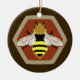 Este bonito diseño presenta una abeja de miel gráfica en conjunto negro y amarillo contra el cálido color naranja de óxido.
