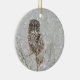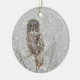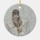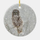 Un hermoso búho gris en una tormenta de nieve de invierno - hace un gran regalo de Navidades para alguien que ama a los búhos, los pájaros, la vida salvaje o las delicadas complejidades de la naturaleza invernal.