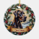 A beautiful, ultra-detailed Christmas design featuring a realistic portrait of the breed centered within a soft, festive winter frame. This elegant design includes pine branches, red berries, and snowflakes against a snowy backdrop, illuminated by warm holiday lighting. The balanced, round composition includes clear space below the dog for customization.