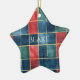 Adorno De Cerámica Green Blue Red Gold Plaid Stripes Christmas