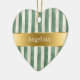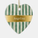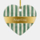 Adorno De Cerámica Green Cream White Stripes Gold Ribbon Christmas