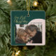 Adorno De Cerámica Green, Pink & Gold Modern First Christmas Photo