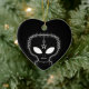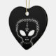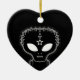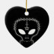 Ornamento de dos lados. Puedes usarlo como collar si das una cuerda... Dibujo de un Alien gris hecho en líneas blancas sobre fondo negro.