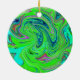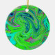 Adorno De Cerámica Groovy Lime verde y azul Resumen de arte retro