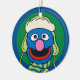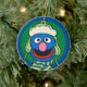 Bring a cheerful, classic Sesame Street friend to your tree with this adorable Grover ornament! The ceramic keepsake features the beloved blue monster bundled up for winter, wearing a cozy beanie/pilot hat and a striped scarf. Set against a bold blue and green background, this design is perfect for adding a fun, nostalgic touch to your holiday decor. This ornament is typically fully customizable with a name and year on the back making it a great personalized gift, yearly keepsake, or stocking stuffer for any fan!