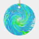 Adorno De Cerámica Guay Resumen Retro Aqua y Lime Green Swirl