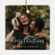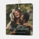 Moderno Mínimo 1 Foto Merry Christmas Script Overlay Ornament. Fácil de personalizar con tus nombres y foto favorita.