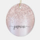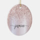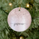 Adorno de cerámica personalizado con nombre de monograma metálico con brillo rosa dorado Glam femenino. Estos diseños presentan su primer nombre en una hermosa tipografía de letra manuscrita con florituras (o caligrafía) sobre un fondo de lámina metálica falsa rosa dorada con borde de brillo glamuroso. Estos son fáciles de personalizar. Gran regalo femenino y elegante para la inauguración de una casa, también para cumpleaños, día de la madre, fiesta de cumpleaños número 16, boda, despedida de soltera, baby shower, fiesta de graduación y es para la chica que ama cosas únicas y elegantes con brillo.
