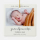 Un tierno guión caprichoso y un diseño moderno para este regalo de ornamento fotográfico. Para personalizar con tu foto de bebé favorita. También puede cambiar fácilmente el color del tipo de letra a su gusto. Perfecto para celebrar tu Primera Navidad como nuevos abuelos.