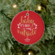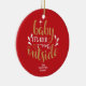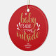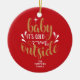 Adorno de cerámica de Navidad con la frase "Baby It's cold outside", en un elegante texto con script dorado y blanco sobre fondo rojo. Puedes personalizarlo con tu apellido. Ayuda a iluminar la decoración de tu temporada navideña. ¡Un regalo perfecto como decoración de Navidad!