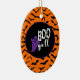 Halloween party ceramic ornament is shown with a cute ghost boo print.