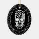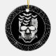 El adorno de cerámica de la fiesta de Halloween se muestra con una estampada espeluznante en un fondo de color negro de telaraña. Personalizar este artículo o compra tal cual. Imagen con licencia