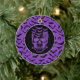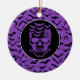 El adorno de cerámica de la fiesta de Halloween se muestra con una estampada espeluznante en un fondo de color púrpura murciélago. Personalizar este artículo o compra tal cual. Imagen con licencia