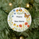 This "new home" ornament presents a vibrant floral wreath design alongside the greeting, "Happy New Home". The reverse side features the message, "A new home, a new beginning, a place where memories grow", along with a personalized date space, transforming it into a meaningful gift and cherished keepsake.