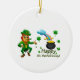 Happy Saint Patrick's Day Leprechaun Rainbow Ceramic Ornament