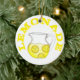 El Ornament presenta un ilustracion original de marca de un cántaro de limonada amarilla refrescante y una rodaja de cítricos de limón en el reverso. Este diseño también está disponible en otros productos. ¿No ves lo que estás buscando? ¿Necesita ayuda con la personalización? Contacte con Rebecca para que tenga algo diseñado para usted.