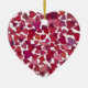 Many multi-colored hearts in different shapes and sizes cover this ornament.