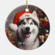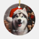 Adorno De Cerámica Hermoso Husky Siberiano con Santa Hat