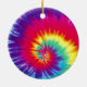 Será un Navidad groovy con este divertido adorno de tintes temáticos de los años 60. Un fondo giratorio de la corbata arco iris desplaza el texto blanco retro. Disponible con elementos coincidentes.