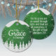 His Grace is Enough, Religious Holiday Ceramic Ornament with green sparkly stars snowy evergreen trees capturing the Christmas magic and joy of a Christian season. On the back, the sacred writing, Ephesians 2:8 KJV states, "For by grace are ye saved through faith; and that not of yourselves: it is the gift of God" all in customizable text, ready for you create your favorite bible verse in festive devotional design hanging decorations. Order your Christ teachings testaments today and make your custom inspirational doctrine keepsakes extra special with divine passages of the word of our Lord! 🎄⛪️