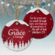 His Grace is Enough, Religious Holiday Ceramic Ornament with berry red snowy evergreen trees capturing the Christmas magic and joy of a Christian season. On the back, the sacred writing, Ephesians 2:8 KJV states, "For by grace are ye saved through faith; and that not of yourselves: it is the gift of God" all in customizable text, ready for you create your favorite bible verse in festive devotional design hanging decorations. Order your Christ teachings testaments today and make your custom inspirational doctrine keepsakes extra special with divine passages of the word of our Lord! 🎄⛪️