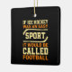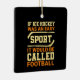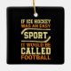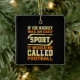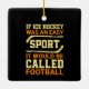 El ornamento de hockey versus fútbol muestra texto de amarillo y oro y dos bastones de hockey. Este ornamento de hockey dice ¡Si el hockey sobre hielo fuera un deporte fácil, se llamaría fútbol!