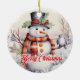 Esta es la temporada, un lindo muñeco de nieve clásico con un pequeño pájaro en la nieve y el guión brillante festivo rojo "Feliz Navidad" - perfecto adorno de cerámica de árbol de Navidad. Impresiones violentas