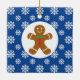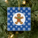 Este adorno de cerámica Navidad representa a un hombre de jengibre rodeado por un patrón de copos de nieve sobre un fondo azul. Es una agradable adición a los decorados de tus Navidades.