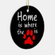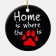 Un juego de palabras con la frase "El hogar es donde está el corazón", este ornamento de cerámica redondeada tiene las palabras "El hogar es donde está la [imagen impresa de la pata]", con la imagen impresa en rojo, que representa el "corazón". El regalo perfecto para los amantes de las mascotas.