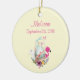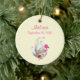 Ornamento personalizado con una bonita pintura acuarela de un huevo verde pálido sentado dentro de una canasta de mimbre. Decorado con cintas, arcos, flores y corazones pequeños. Flamingo rosa y conejo blanco a un lado.