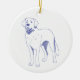 Klassisches Design in Blau-Weiß. Blaue Linienzeichnung der Hunderasse Labrador auf weißem Untergrund.