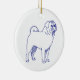 Klassisches Design in Blau-Weiß. Blaue Linienzeichnung der Hunderasse Mops auf weißem Untergrund.