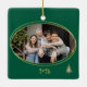 Hunter Green with 4 graphic Christmas trees in green pink and gold Christmas Card is stylish with a holiday feel. Each tree is individual and the colors are subtle and look great against the Christmas hunter green. This ornament can be personalized with your own photo, the year, your preferred holiday greeting and names. The ornament also coordinates with a range of Holiday Party stationary and party supplies. Giving a photo ornament each year should be a tradition for grandparents and family members. Yearly photo ornaments build a history to be relived every holiday season for your loved ones.