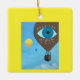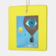 Pretty painting of three hot air balloons, with the largest hot air balloon, having Imagine Love, is printed on both sides of ornaments. The large balloon also includes a painting of a third eye, with pink hearts that form a border around the word, Love. There is a yellow border around the painting that can be customized to any color of your selection. Thank you for shopping at CherylsArt on Zazzle.