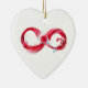 Símbolo infinito de flujo continuo de vino tinto vertiendo en vidrio de vidrio sobre fondo blanco.